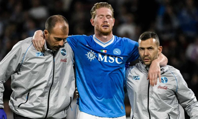 وقالَ نابولي في بيان «بعد إصابته في مباراة إنتر ميلان السبت، خضعَ كيفن دي بروين لفحوص كشفت عن إصابته بتمزق كبير في العضلة ذات الرأسَين الفخذية في فخذه الأيمن».