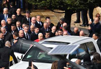 وصل البابا لاوون الرابع عشر إلى دير راهبات الصليب في جل الديب، على وقع قرع الأجراس والترانيم، في محطّته الأولى في اليوم الثّالث والأخير من زيارته الرّسوليّة التاريخيّة إلى لبنان.