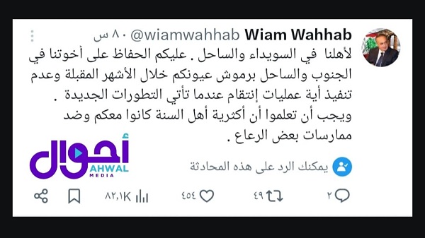 تغريدة وهاب.. بشرى “الخلاص القريب” لأهل السويداء والساحل