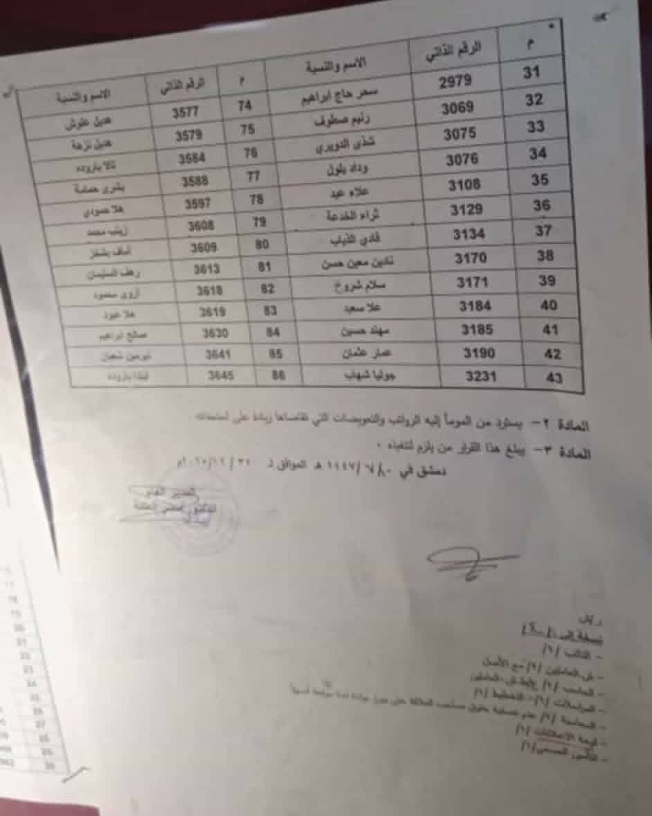 وفي جديد سلوكيات سلطة الجولاني العنصرية فقد تم فصل 86 موظف من العقود السنوية في الهيئة العامة للطاقة الذرية في دمشق غالبيتهم من العلويين ومنهم من تجاوزت خدمتهم الـ 15 عام، ما يعني حرمان هؤلاء الموظفين من حقهم في الحصول على تعويض نهاية الخدمة، ويجعلهم دون أي مصدر رزق هم وعائلاتهم بعد هذا القرار المجحف، فهل هكذا يتم بناء سوريا الجديدة؟
