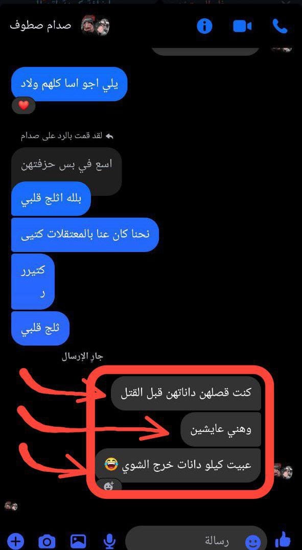 وبحسب ما نشرته تلك الوسائل نقلاً عن مصادرها، فإن التسريبات المنسوبة للمقاتل (صدام صطوف) تضمنت اعترافات وصفت بـ “الخطيرة” حول آليات التعامل الميداني مع المعتقلين والخصوم في المرحلة الراهنة.
