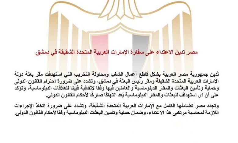 تواجه سلطة الجولاني مأزقاً بنيوياً يعري زيف ادعاءاتها بـ “مؤسساتية الدولة”، بعد أن تحولت العاصمة السورية إلى مسرح لاعتداءات طالت البعثات الدبلوماسية، بدأت بالإساءات اللفظية للمملكة الأردنية الهاشمية، وتطورت إلى أعمال شغب وتخريب استهدفت مقر سفارة دولة الإمارات العربية المتحدة ومنزل رئيس البعثة، مما استدعى إدانات دولية واسعة، أبرزها من جمهورية مصر العربية التي وصفت الحادثة بالانتهاك الصارخ لاتفاقية فيينا والقانون الدولي.